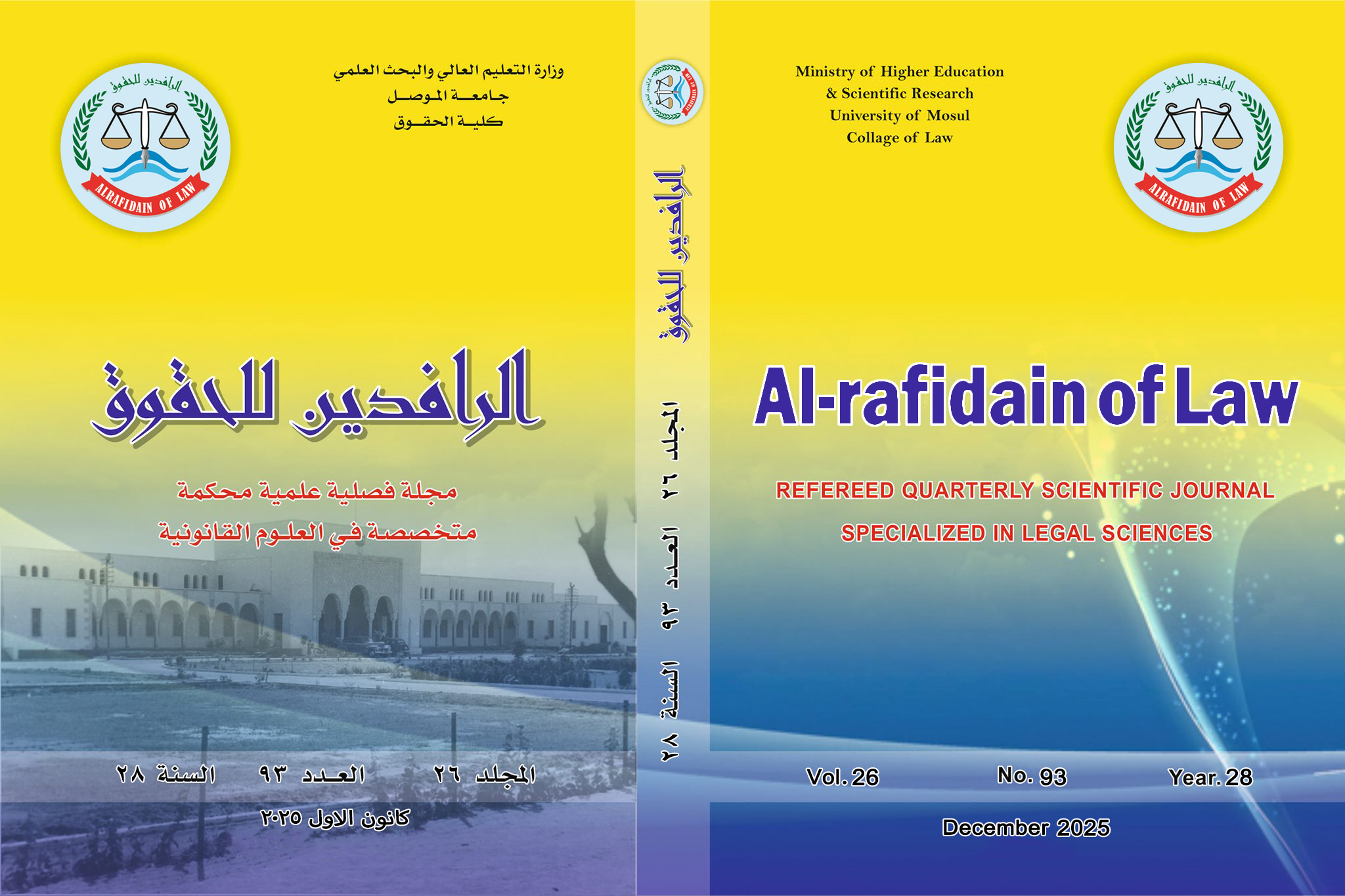 Al-rafidain of Law Journal (ARLJ) has been published on behalf of the College of Law, University of Mosul, since 1996.  We succeeded in re-issuing the journal immediately after the liberation of Mosul City from ISIS in 2017. It is an open-access journal published under the license of Creative Commons Attribution 4.0 International (CC-BY). ARLJ welcomes high-quality submissions, including articles, essays, case notes, comments, and reviews, which focus on Iraqi, Regional, or international legal developments.